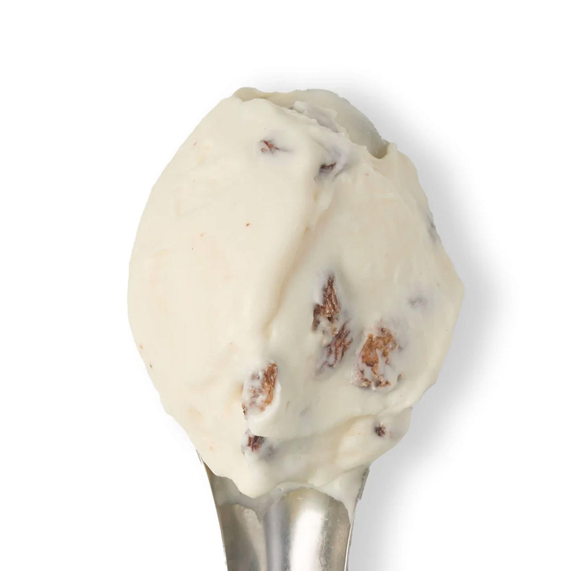 Whole milk, double cream (milk), sugar, sultanas (8.7%), dry glucose syrup, water, dextrose, thickener: vegetable fibres; Twin Fin Barrel aged rum (2.5%), skimmed milk powder, milk protein, Dorset Sea Salt. Plumped sultanas (8%): sultanas, marsala wine (sulphites), Twin Fin Barrel aged rum, orange oil, Madagascan vanilla