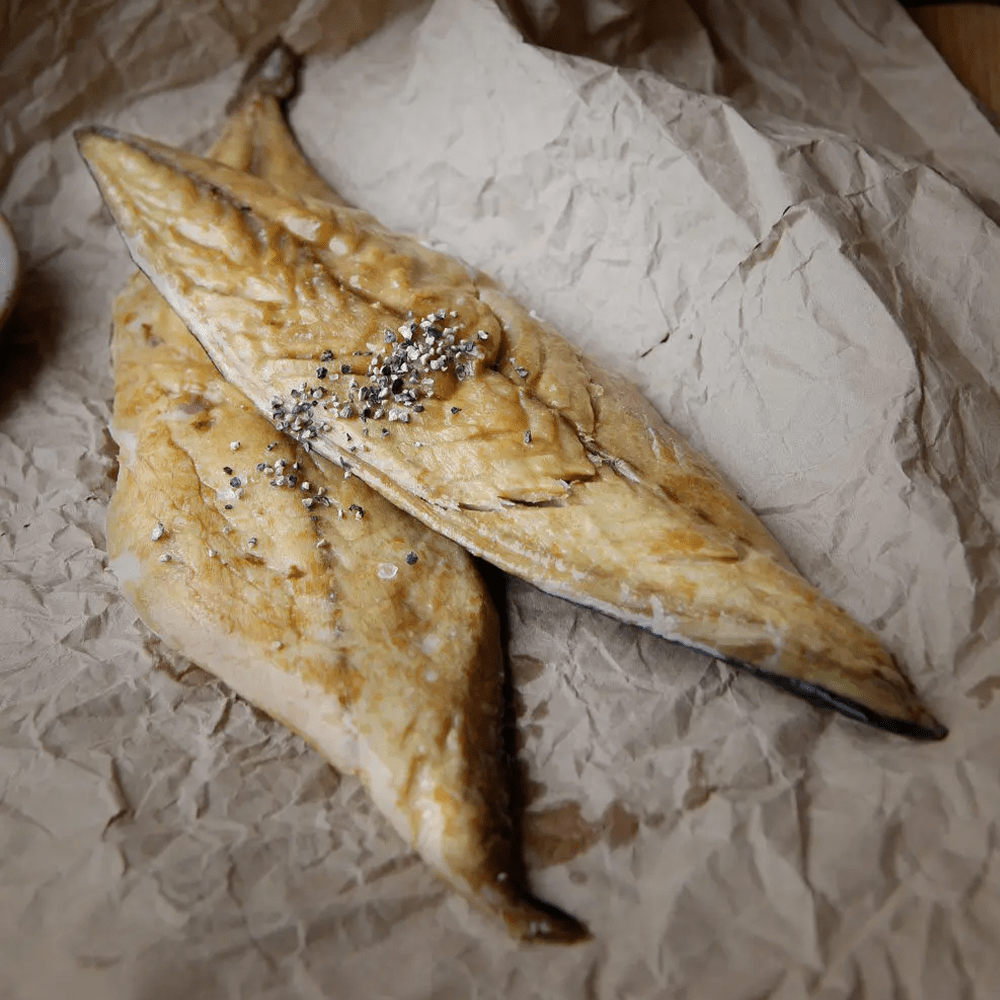 Delicious pair of hot smoked mackerel fillets! Gently cured mackerel fillets before being roasted over the oak fire in our hot smoker. Full of flavour, whether eaten hot or cold.