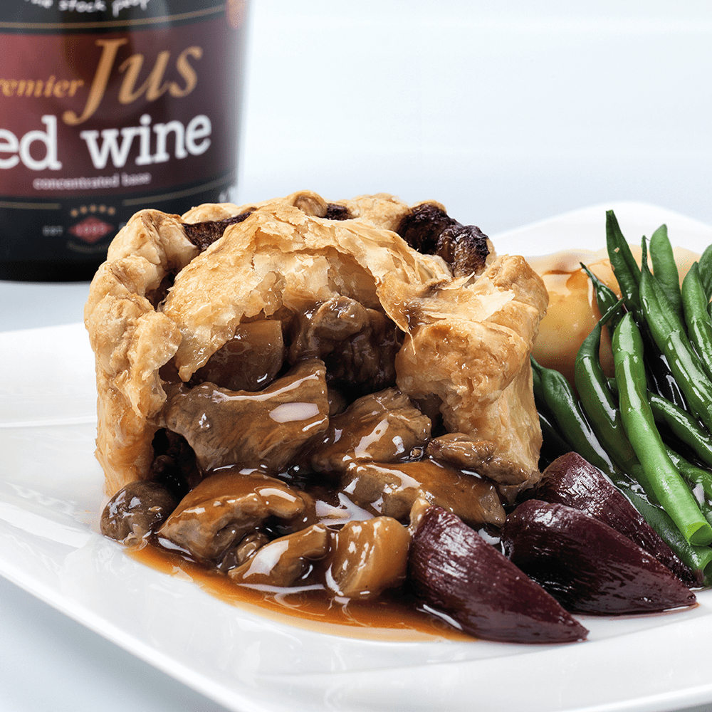 Beef Stock (Water, Beef Stock), Veal Stock (Water, Veal Juice, Veal Fat, Concentrated Vegetable Juices (Carrot, Tomato, Onion, Mushroom, Garlic)), Modified Tapioca Starch, Red Wine Concentrate (contains SULPHITES) (12%), Salt, Sugar, Flavourings, Yeast Extracts, Glucose, Maltodextrin, Acidity Regulators (Malic Acid, Tartaric Acid), Ground Thyme.