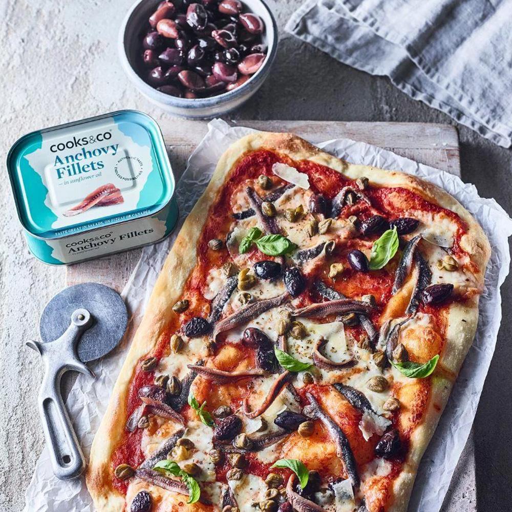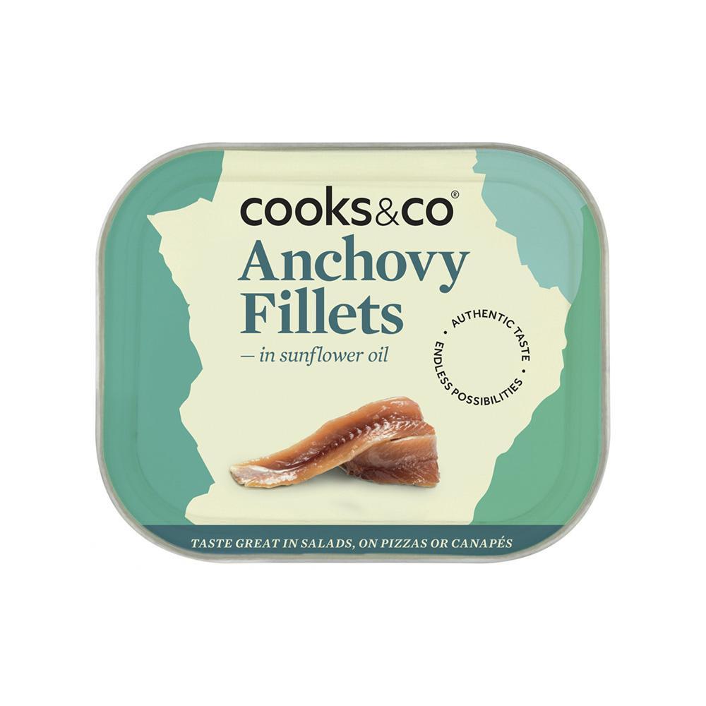 Cooks & Co Flat Anchovy Fillets in sunflower oil are a product of traditional Sicilian practices and values. While only a few inches in length, these green-blue fish are packed with umami. The sunflower oil enhances the strong taste of these Italian anchovies.