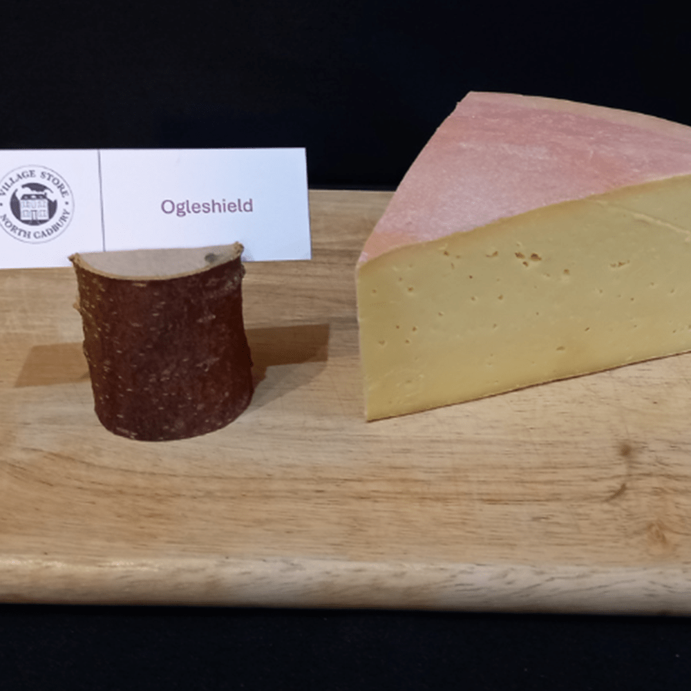 Developed over the last ten years, Ogleshield is made from the rich milk of Montgomery’s herd of Jersey cows. This cheese is washed with a special brine every three days, resulting in a slightly pungent moist rind that softens the cheese and enhances its depth of flavour. A superb Westcountry alternative to Raclette, Ogleshield melts beautifully, making it perfect for cooking.
