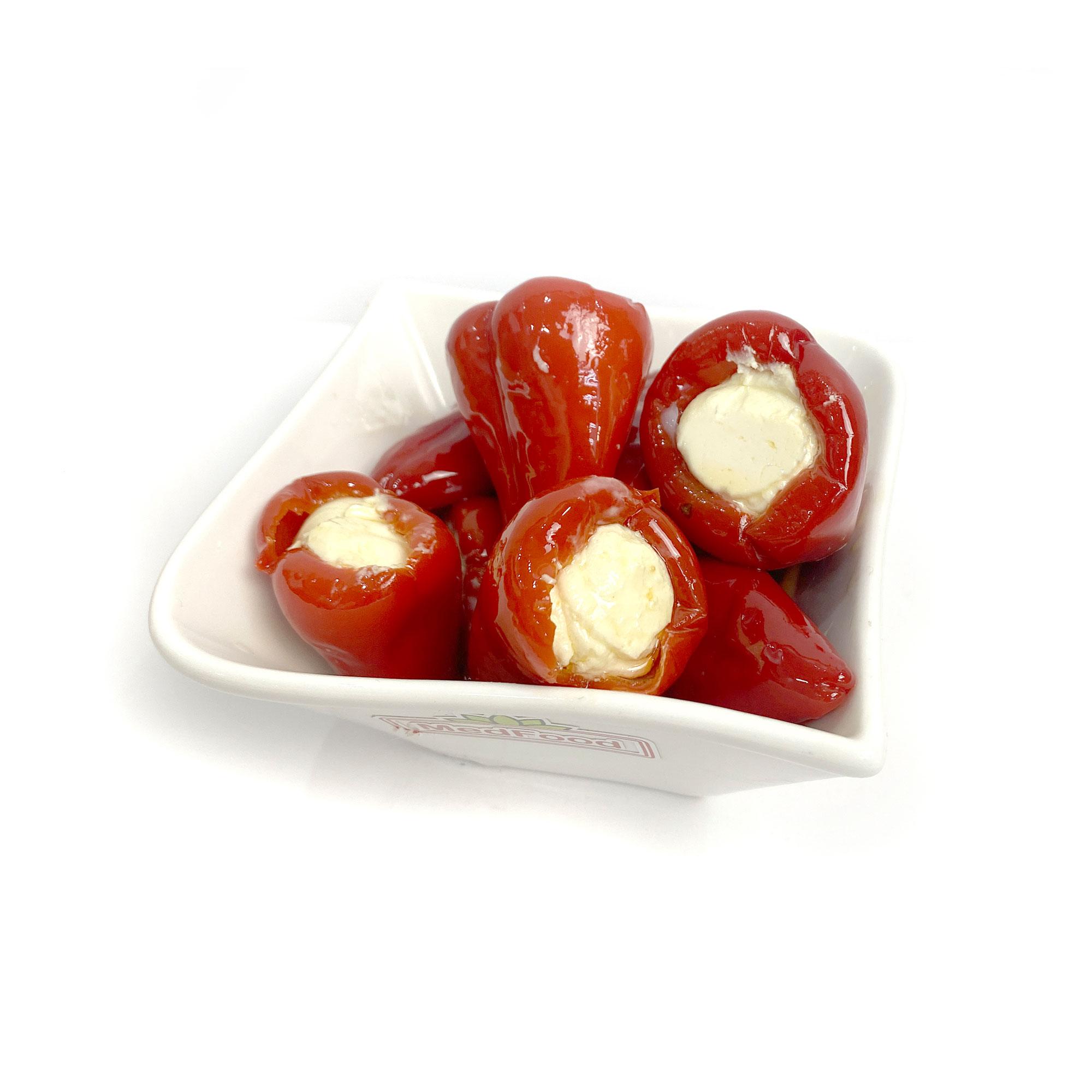 Red African peppers stuffed with cream cheese in sunflower oil.