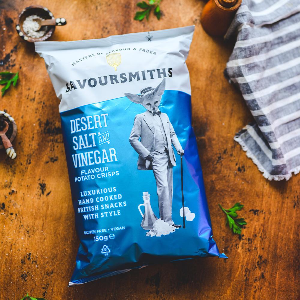 Potatoes, sunflower oil, desert salt & vinegar flavour (rice flour, oryx Desert salt, white vinegar powder, natural flavouring, sugar, acidity regulator(citric acid), medium chain triglycerides, anti-caking agent (silicon dioxide)).