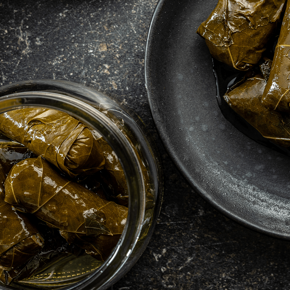 Cooked Rice (30%), Vine Leaves (17%), Onions, Sunflower Oil, Dried Dill, Spice, Salt, Acidity Regulator: Citric Acid.