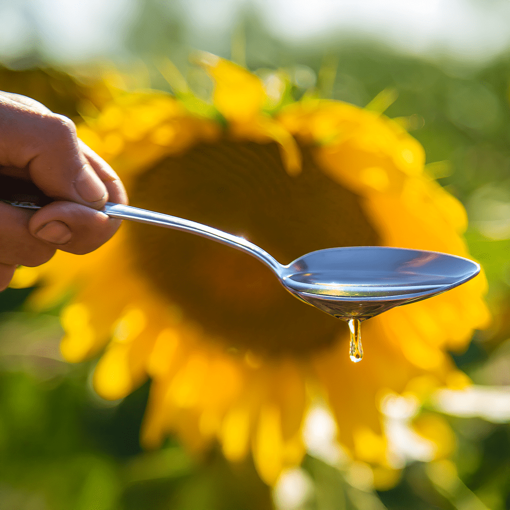 Sunflower oil is the non-volatile oil pressed from the seeds of the sunflower. Sunflower oil is commonly used in food as a frying oil, and in cosmetic formulations as an emollient. Sunflower oil is primarily composed of linoleic acid, a polyunsaturated fat, and oleic acid, a monounsaturated fat.