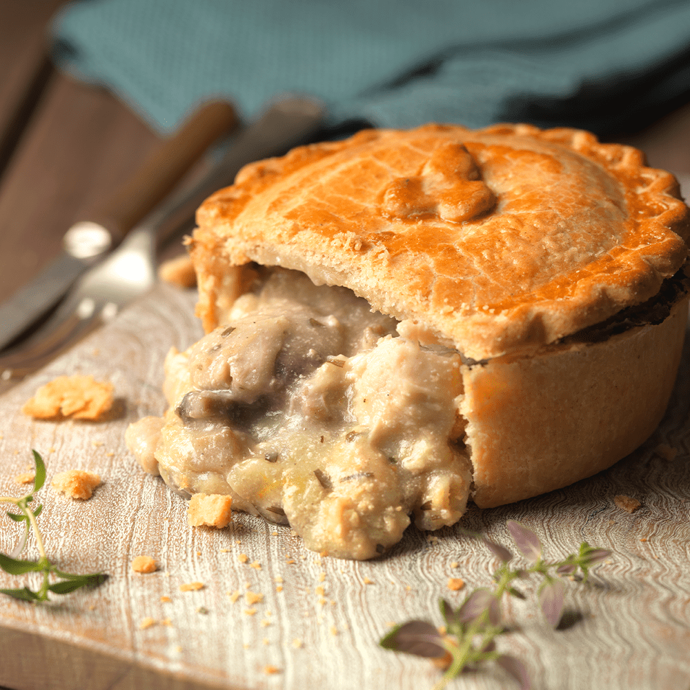WHEATflour (Calcium Carbonate Iron Nicontinamide Thiamine Hydrochloride) Chicken (23%) Water Mushrooms (5%) Margarine (Vegetable Oil (Rapeseed Sustainable Palm Sunflower) Water Salt Emulsifier Citric Acid Colour (Carotenes) Vitamin A & D Flavourings) Vegetable Shortening (Sustainable Palm Oil Rapeseed Oil) Onion Sauce (WHEATflour Skimmed MILK Powder Modified Starch (Maize) Salt Flavour Enhancer (E621) Flavourings Hydrolysed Vegetable Protein (SOYA) Chicken Powder (Cooked Chicken Extracts Of Rosemary) Spices (CELERY)) Double Cream (MILK) EGG White Wine (Sherry Salt SULPHITES (E220) (E202) Vitamin C) Garlic Puree (Garlic Granules Citric Acid (E330)) Tarragon.