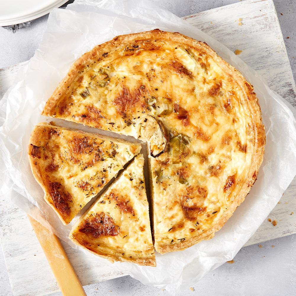 Ingredients: Egg Mix (MILK, EGG, Salt), Shortcrust Pastry (WHEAT flour* (GLUTEN), Vegetable Fat Spread (Vegetable Oils (Rapeseed, Palm, Sunflower), Water, Salt, Emulsifier (Mono and Diglycerides of Fatty Acids), Acid (Citric Acid), Colour (Carotenes), Vitamin A and D, Flavourings), Vegetable Shortening (Sustainable Palm Oil, Rapeseed Oil), Water), Cheddar Cheese (MILK, Salt), Leeks (7.3%), Bacon (Pork, Water, Salt, Preservatives (Sodium Nitrite, Potassium Nitrate), Antioxidant (Sodium Ascorbate)) (7.3%), Mixed Herbs